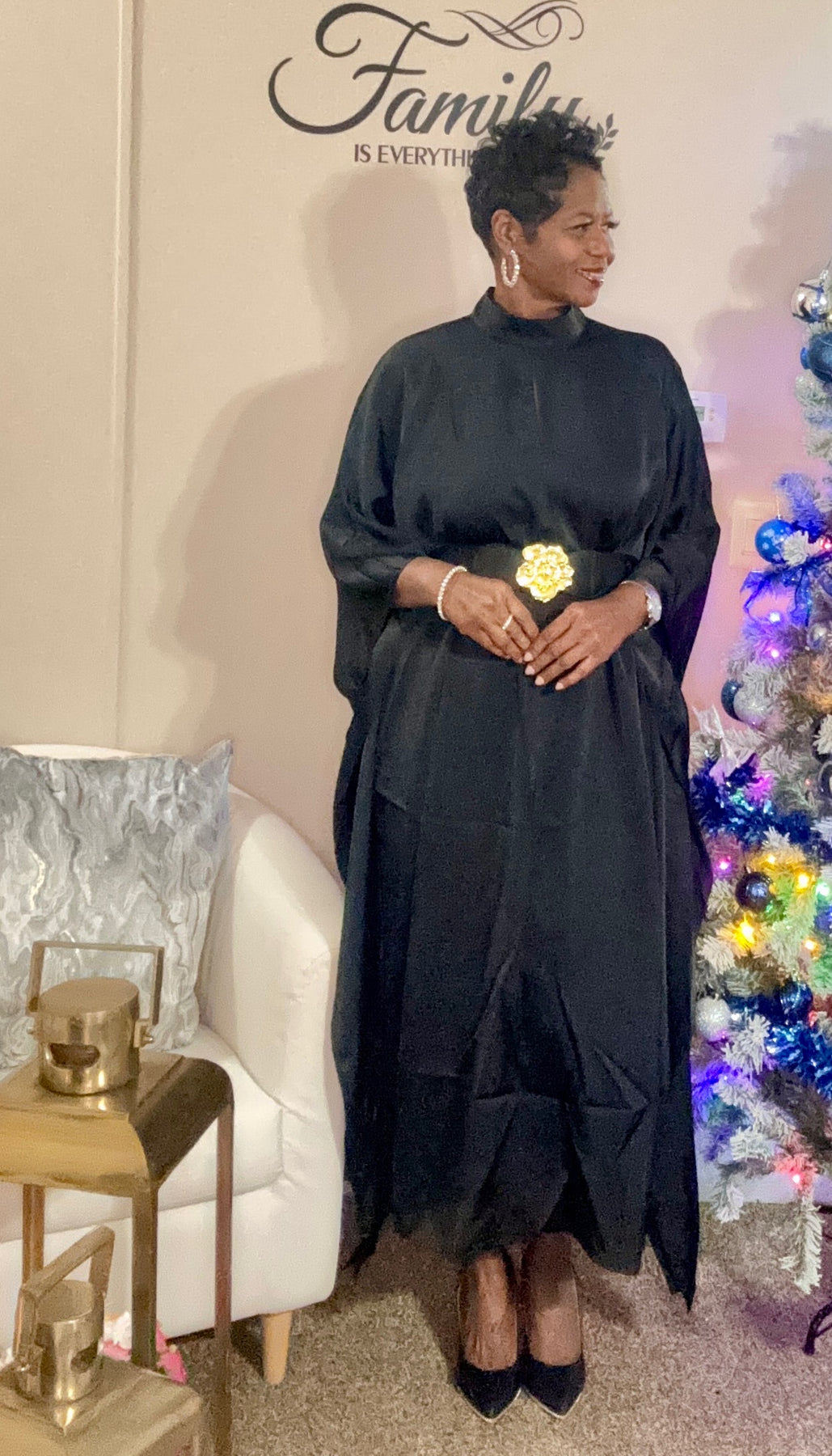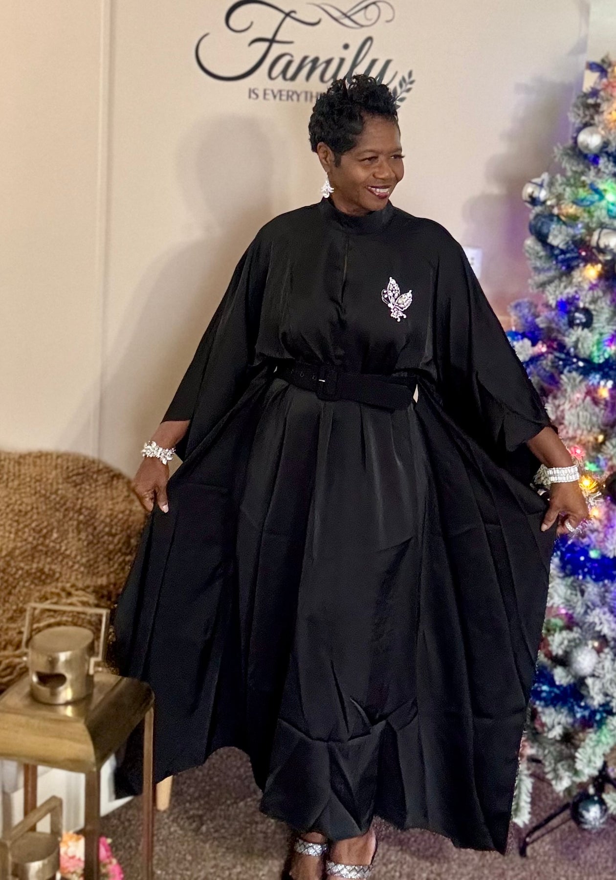 Black swing open sides dress cab also has be worn belted