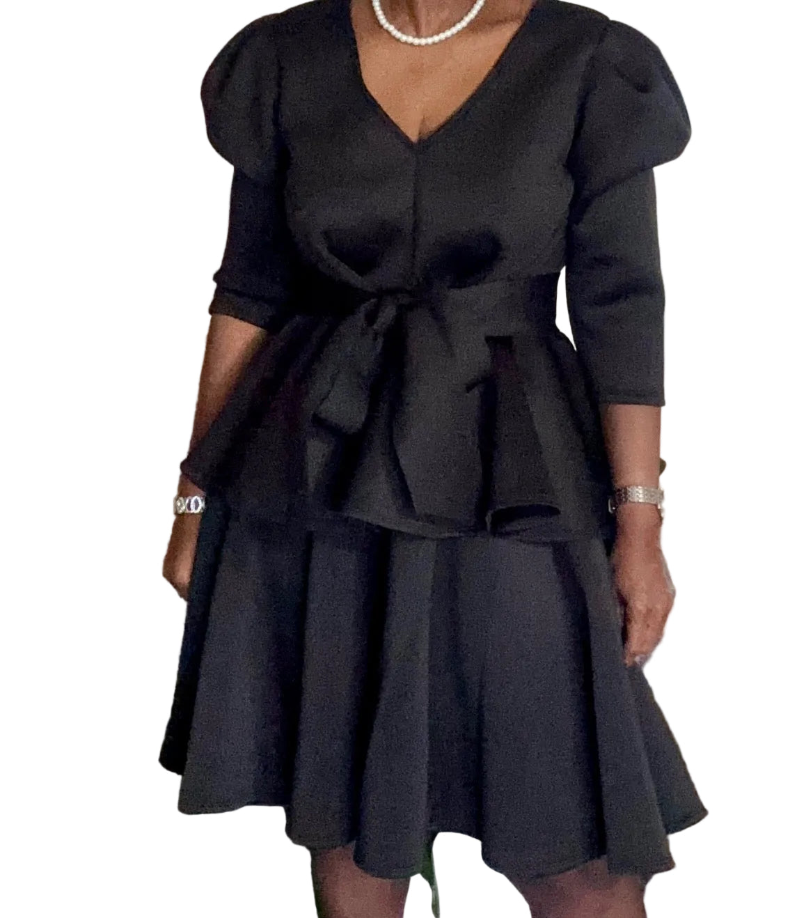 3/4 length sleeve peplum top with detachable belt