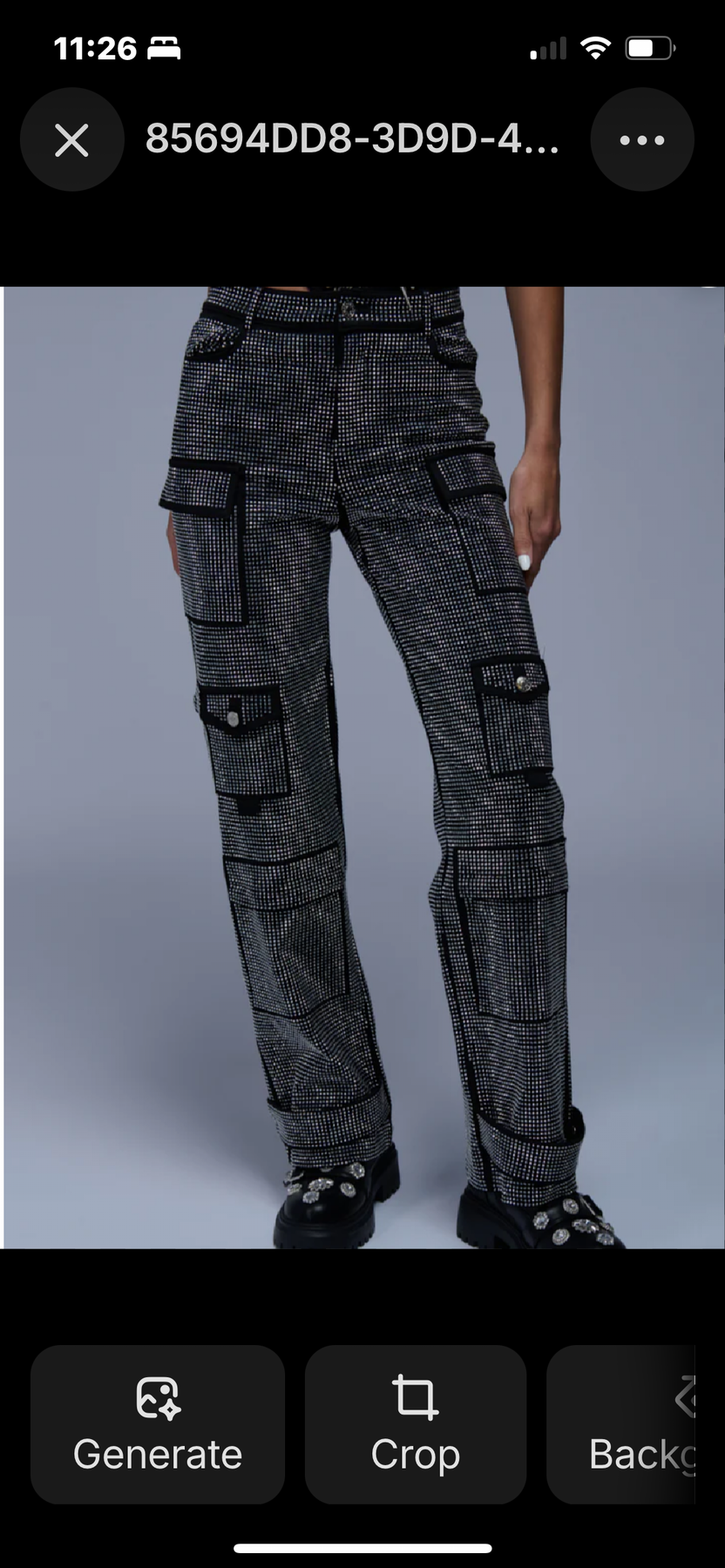 Mid rise cargo rhinestone pants with front side and back pockets