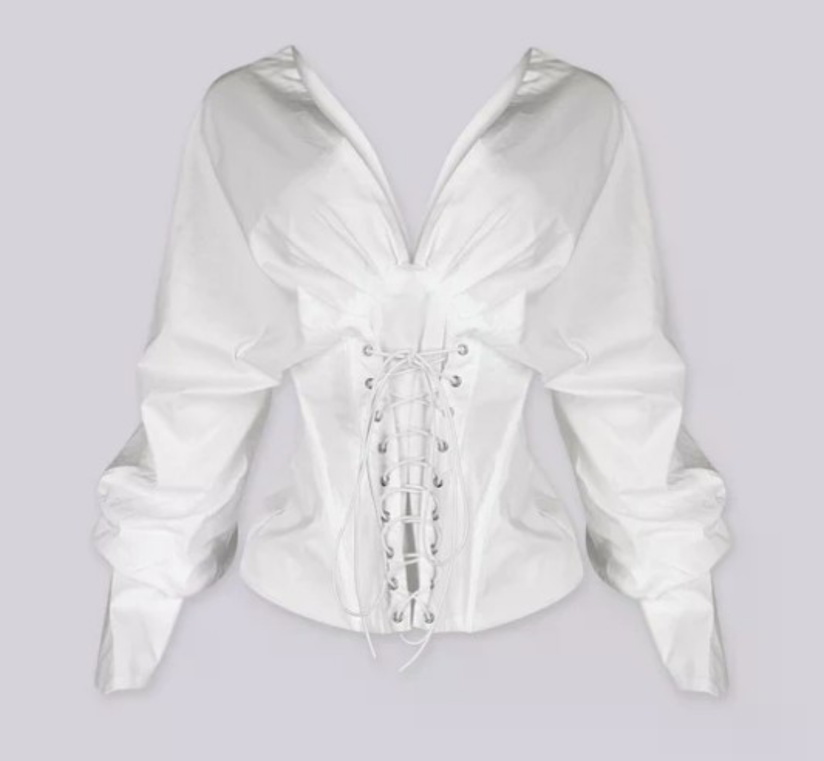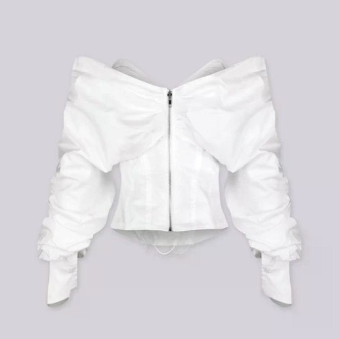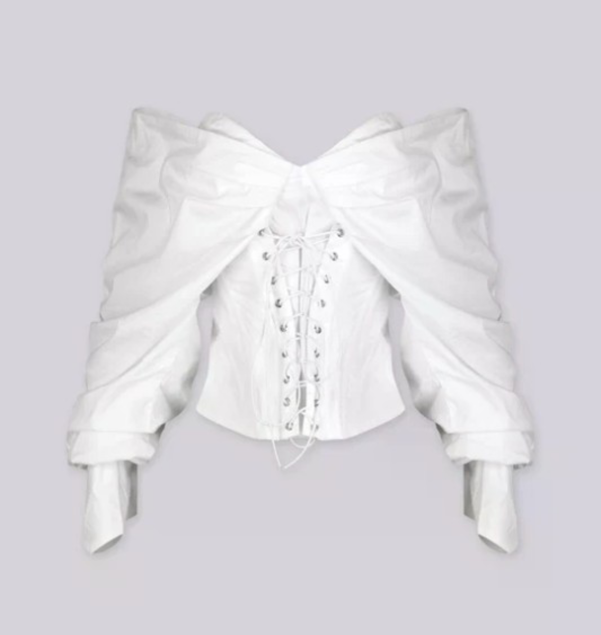 Off white corset top lace up front long sleeve can be worn off the shoulder zipper back