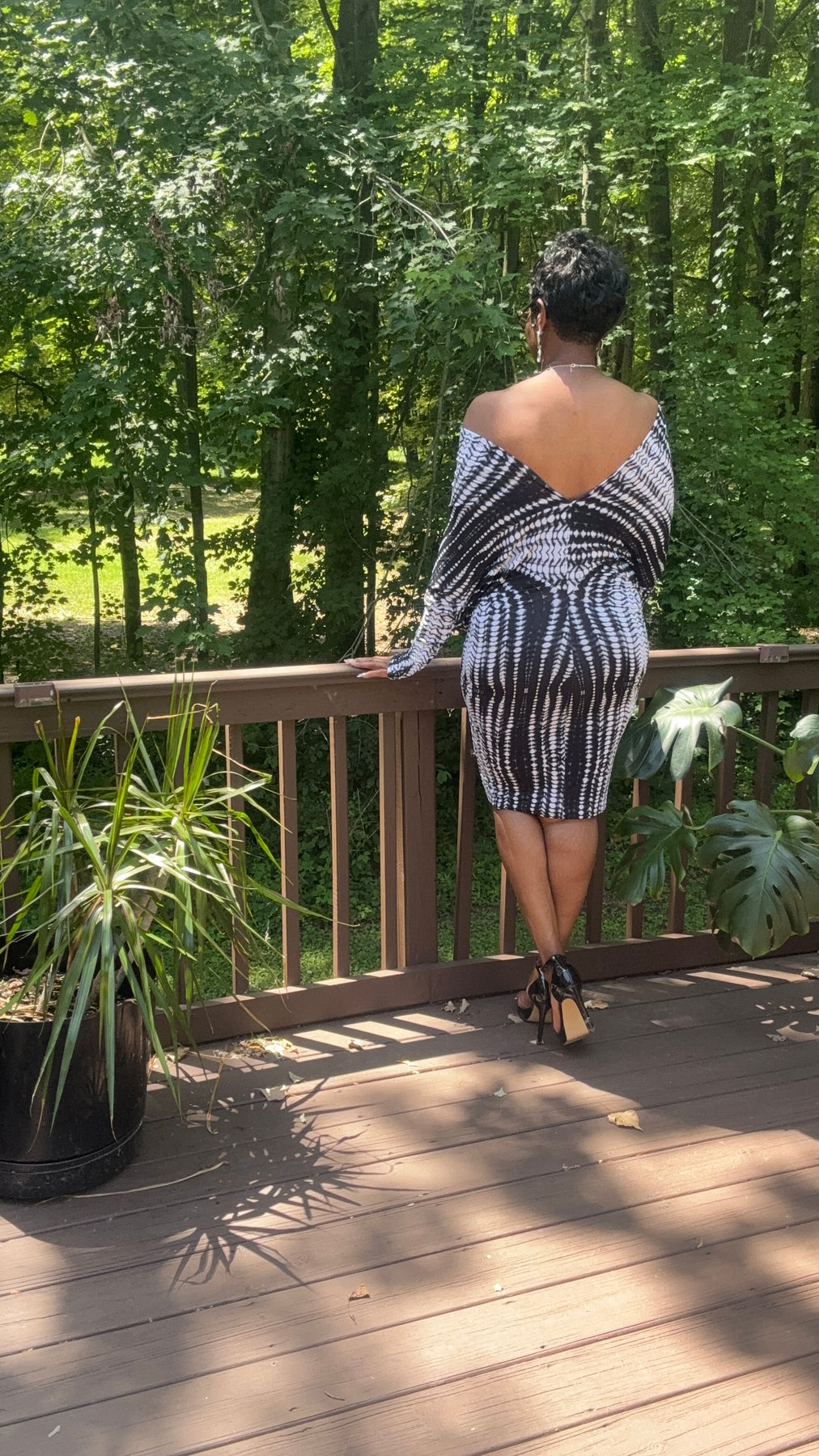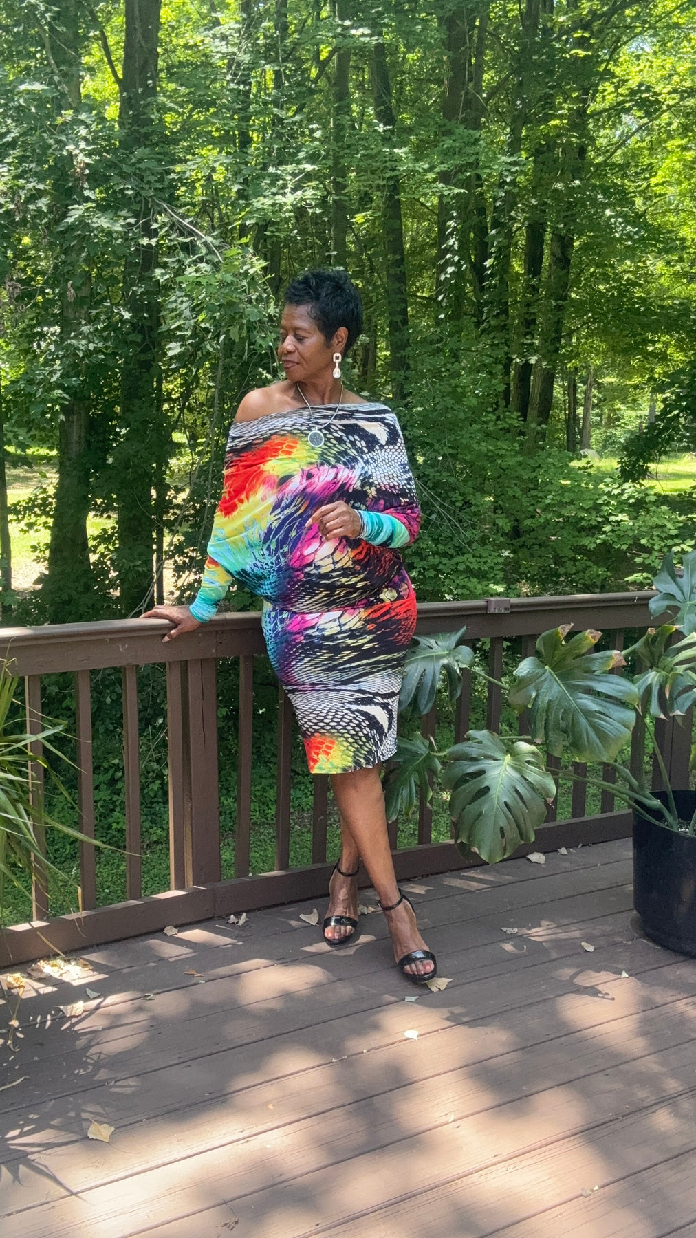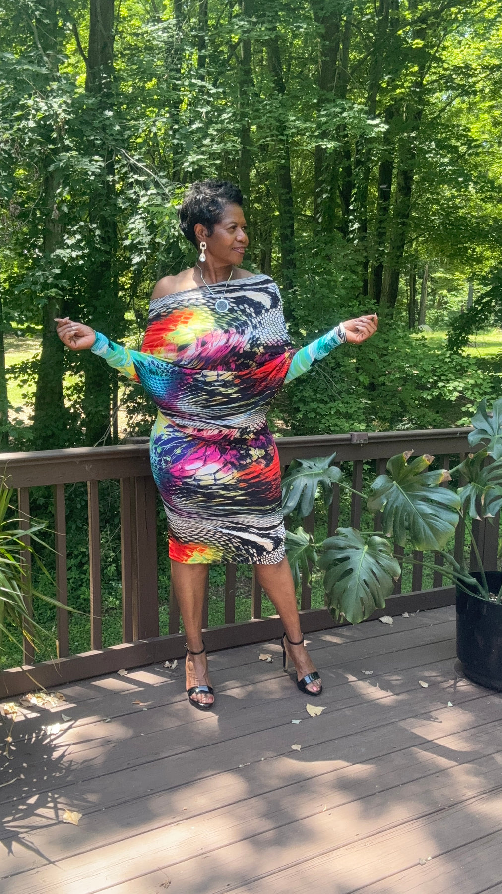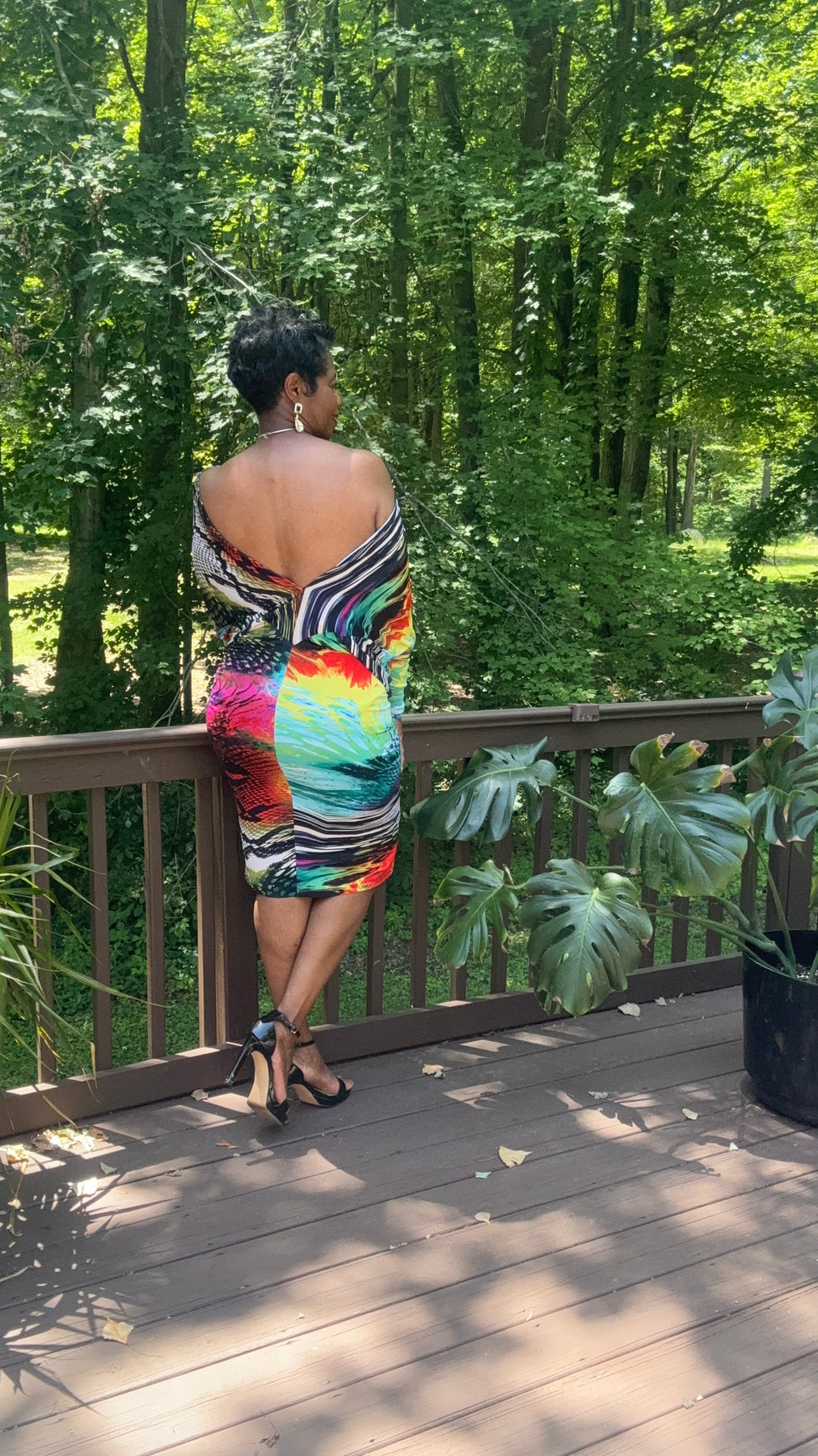 Multi wear dress long sleeve fitted dress can be worn off the shoulder in the front back the more you wear it the options are endless to how many options you have on styling it